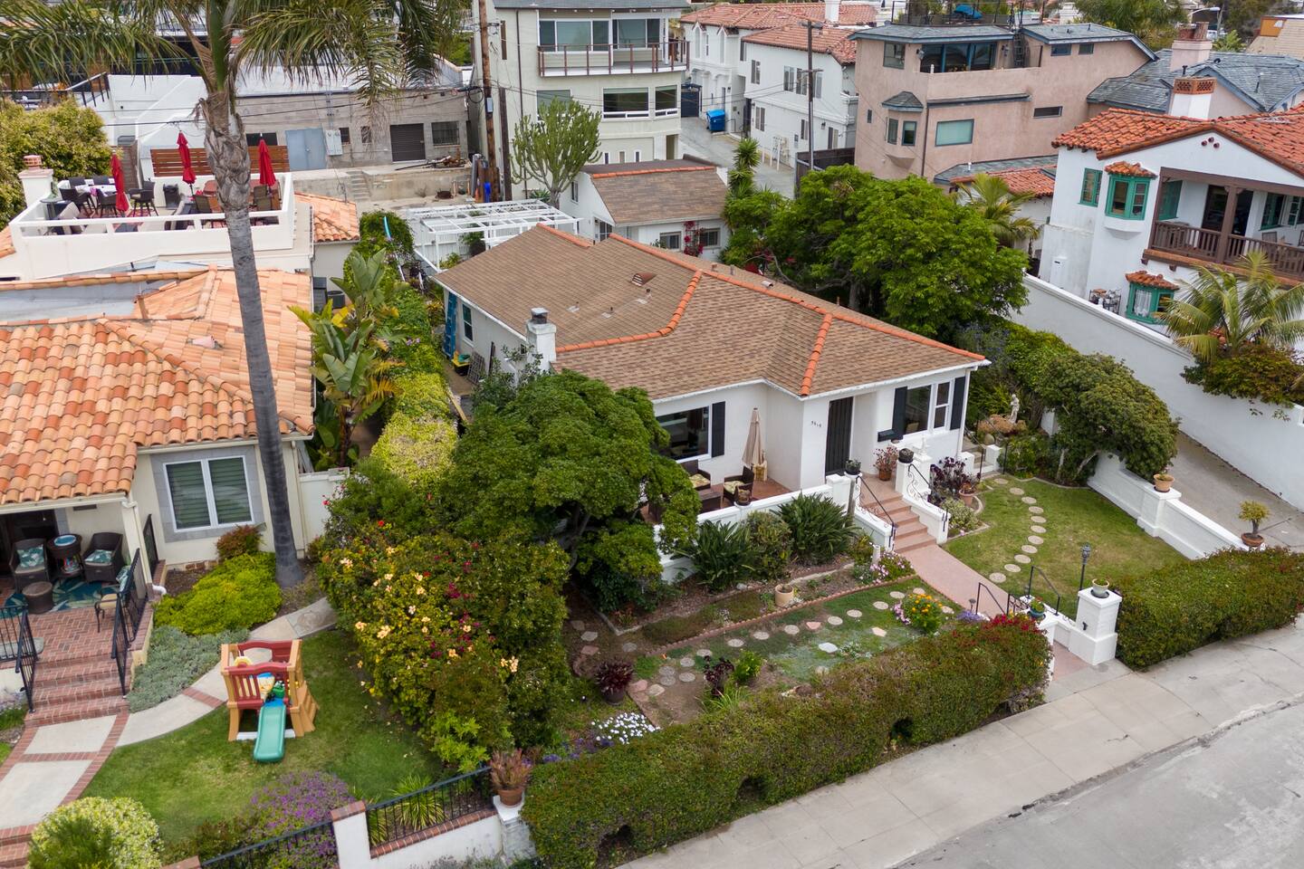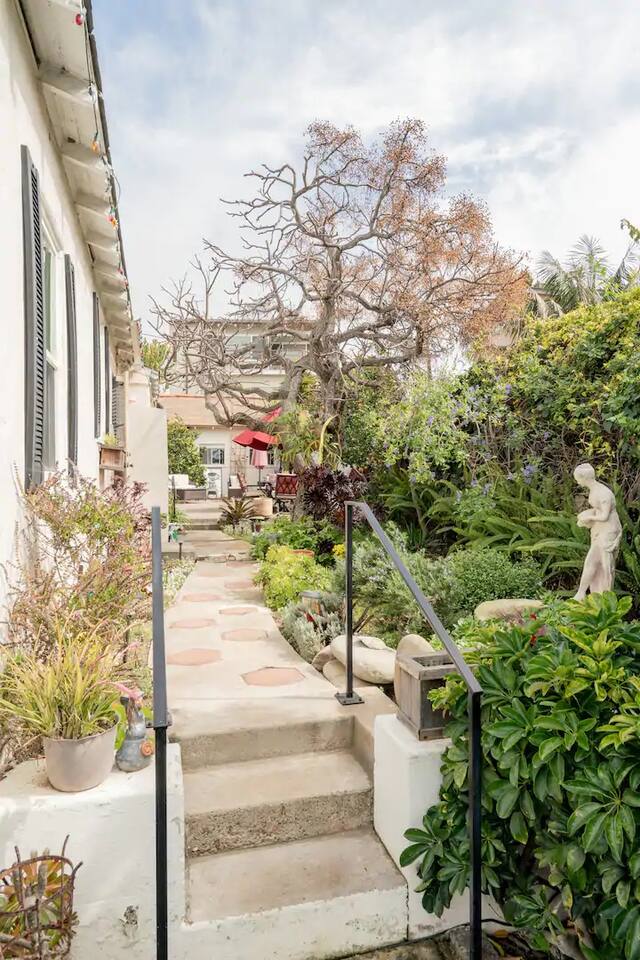 Our seaside home is just yards from the Pacific Ocean and six short blocks to sandy beaches. The home comfortably fits up to six, featuring king and queen beds. We are in the heart of Bird Rock - just steps away from world-class coffee, wonderful restaurants, pubs, wine and charcuterie, live music, beautiful parks, the ocean and many other adventures.